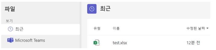 팀즈를 통해 접속하거나 생성한 파일은 최근 기록을