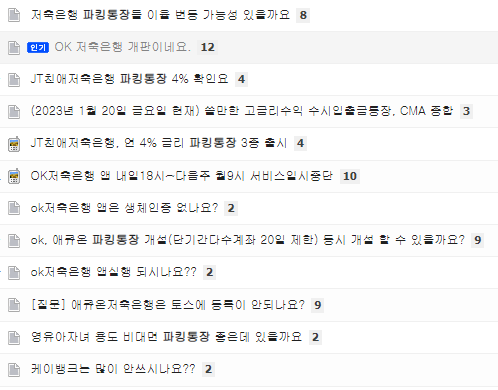 위와 같이 현재 OK 저축은행?? 이야기가 굉장히 많이 나오죠...ㅎ